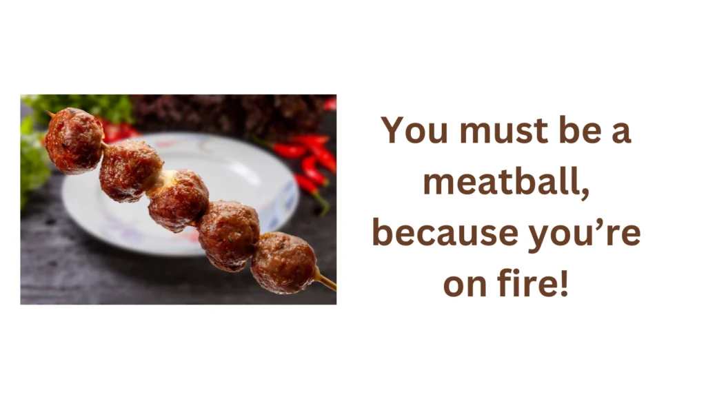 This collection of meatball pickup lines is the perfect way to spice up your conversations, whether youâre aiming for humor, charm, or romance. Whether youâre a foodie or simply want to impress someone with a playful line, these meatball-themed lines are sure to bring a smile to their face! So, what are you waiting for? Start rolling out those pickup lines today and enjoy a delicious conversation!